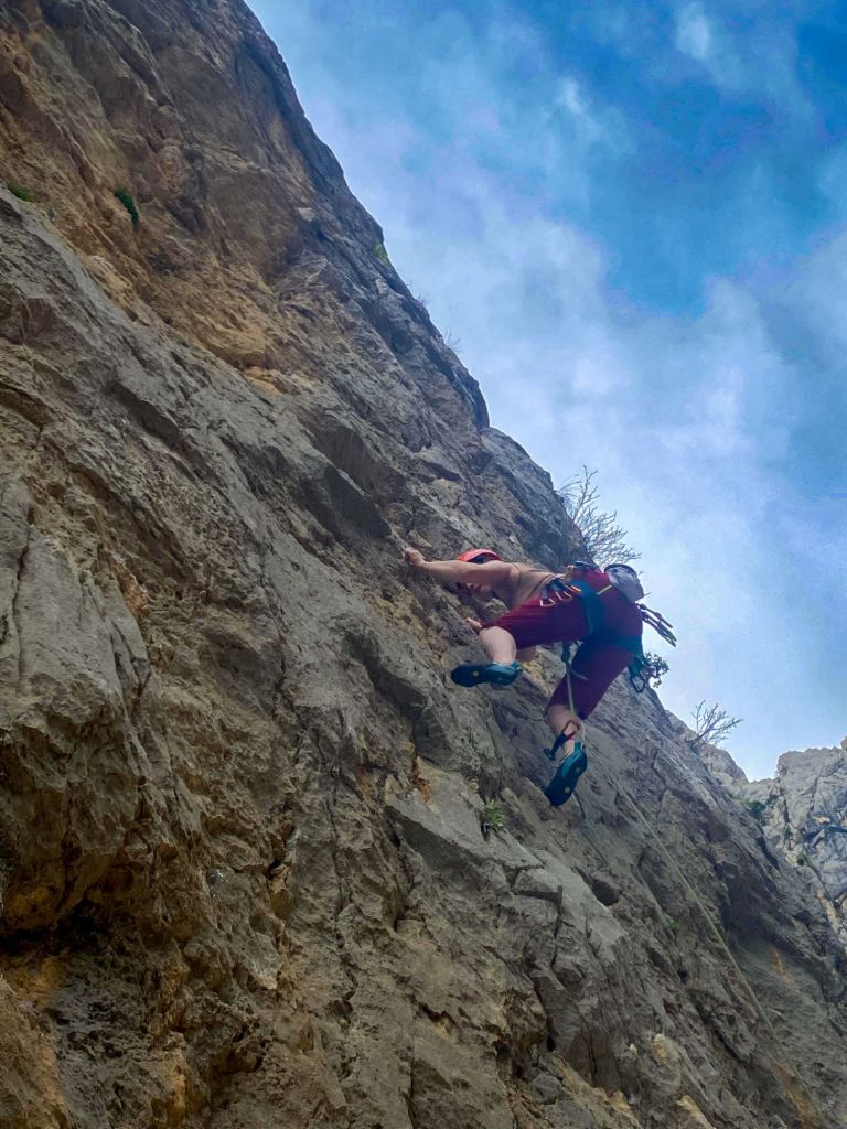 Taj termin dolazi taman nakon završetka školice sportskog penjanja, pa se veselim doći opet s malo više sigurnosti i osjećajem da znam što radim. Iako stijena uvijek djeluje grandiozno i prirodno budi strah, zanimljivo je koliko se taj osjećaj mijenja kako gradiš povjerenje u svoje tijelo. U jednom trenutku više ne gledaš stijenu kao nešto ‘protiv sebe’, nego kao nešto s čim surađuješ.
